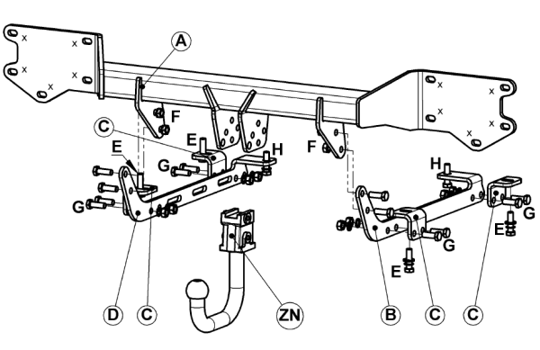 Фаркоп с электрикой 13-контактов на Volkswagen Touareg 2018-, Audi Q8 2018-, Audi SQ8 2020-, Porsche Cayenne 2017-, Porsche Cayenne Coupe 2019- 322064900113