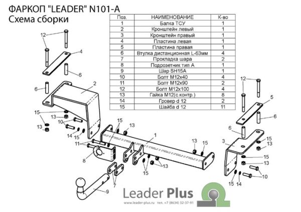 Фаркоп Nissan Almera 2013-2018 условно-съемное крепление шара NS 24