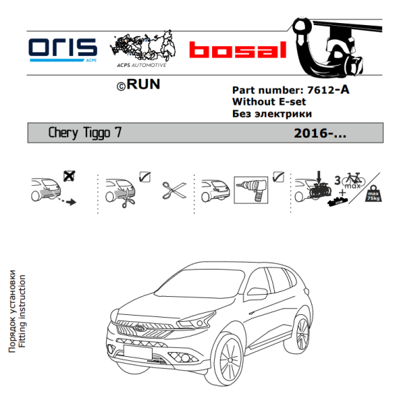 Фаркоп Чери (Chery) Tiggo 7 2019- 7612-A