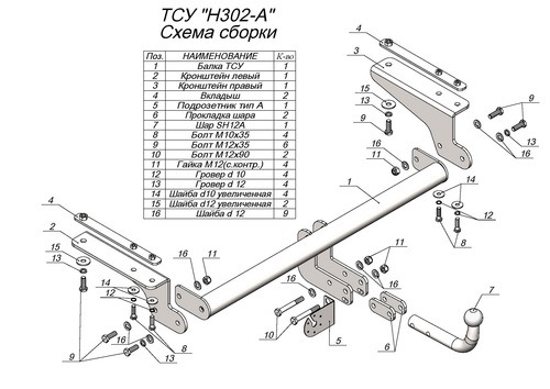 Фаркоп для Haval F7 2018-, Haval F7x 2019- с условно-съемным креплением шара (на 2 болтах), требуется 2 сверления H302-A