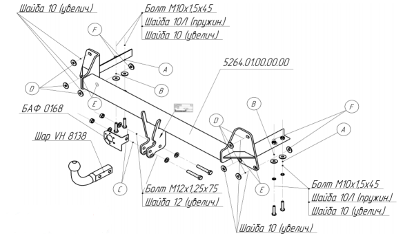 Фаркоп Хендай (Hyundai) Starex 2008-2018, 2018-, Hyundai H1 2008-2018, 2018- с оцинк. шаром 90912-A