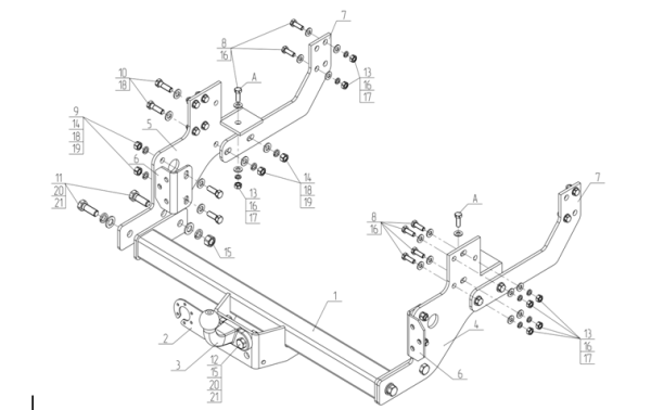 Фаркоп с оцинк. шаром Audi TT 2006-2014 крепление шара на двух болтах 90102-A