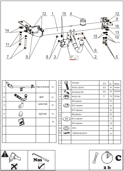 Фаркоп FAW Besturn X80 2013-2018, 2018- съемное крепление шара на двух болтах 3951.12