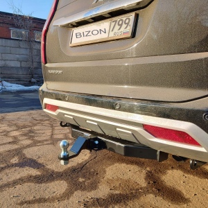 Фаркоп Митсубиси (Mitsubishi) Pajero Sport III рестайлинг 2021- без подрезки бампера. Тип шара: E (легкосъемный шар под квадрат). FA 0290-E