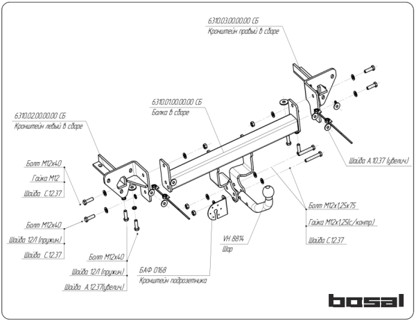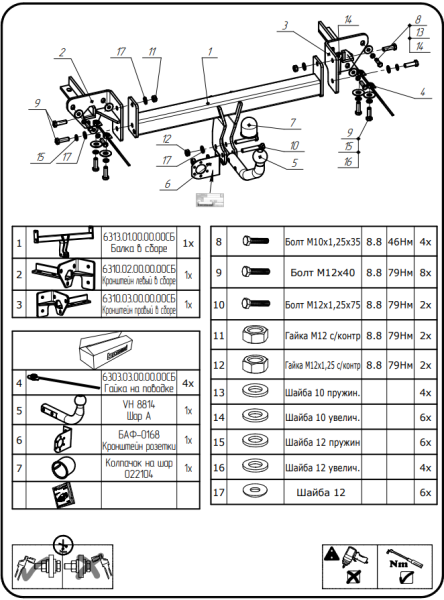 Фаркоп Субару (Subaru) XV 2017- 6313-A