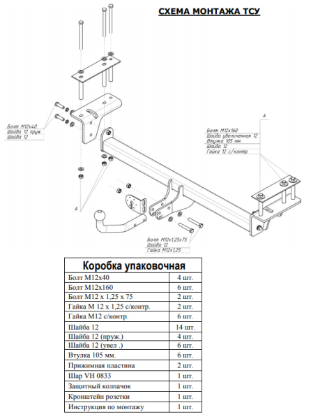 Фаркоп оцинкованный Audi A3 хб 3/5 дверей, VW Bora сед./унив. (только 2WD), VW Golf IV хб 3/5 дверей, унив. (только 2WD) условно-съемное крепл. шара A020A