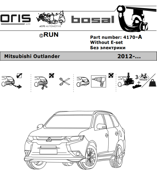Фаркоп Митсубиси (Mitsubishi) Outlander 2012-2019, 2019-2022 4170-A