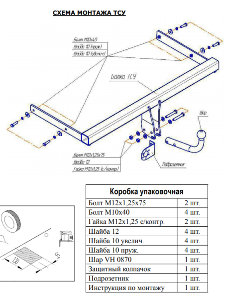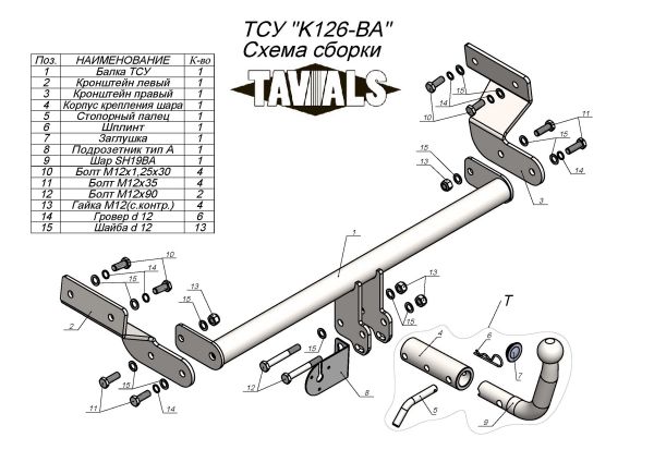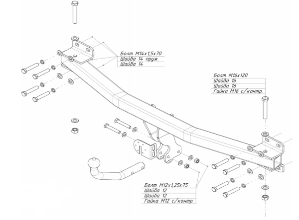 Фаркоп Lada Vesta седан 2015-, Lada Vesta Cross седан 2018-, Lada Vesta SW Cross универсал 2018- съемное крепление шара на двух болтах 4519.12