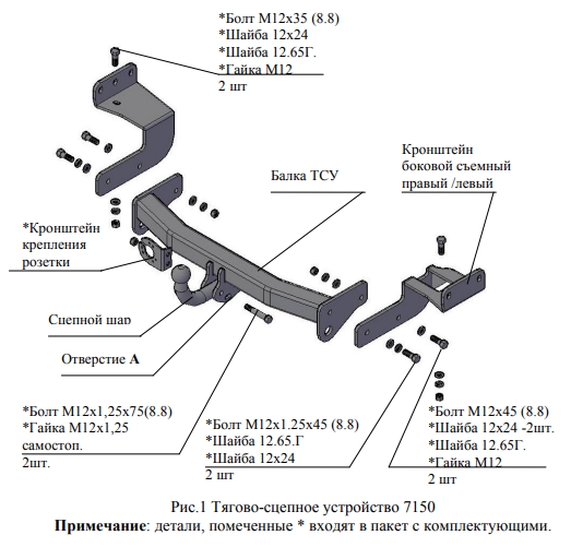 Фаркоп Kia Seltos 2019- съемное крепление шара на двух болтах 4482.12