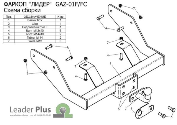 Фаркоп Газель 2705 кроме 4WD без снятия запасного колеса 1994-2008 GAZ-01FC