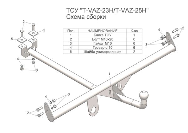 Фаркоп Лада Приора ВАЗ 2172 хэтчбек 2013- крепление шара на двух болтах 2172.01.C