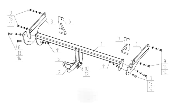 Фаркоп Nissan X-Trail T32 2014- крюк на двух болтах 159347