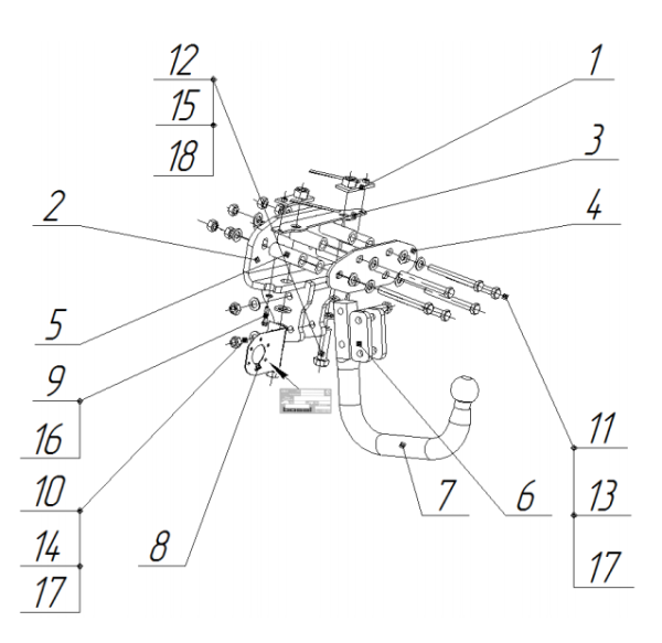 Фаркоп Volkswagen Tiguan II 2015-, Skoda Karoq 2018-, Skoda Kodiaq 2016-, Seat Ateca 2017-. крюк на двух болтах 269068