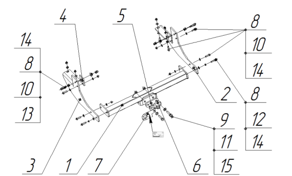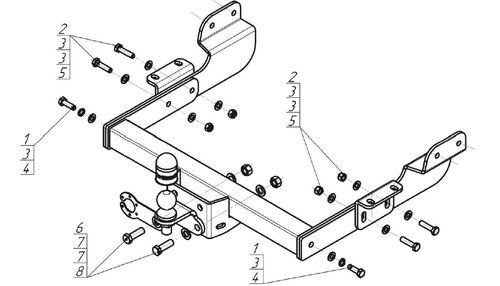 Фаркоп с оцинкованным шаром на Mitsubishi L200 2007-2015 (кроме Long), L200 2015-, Fiat Fullback 2016- 91301-FE