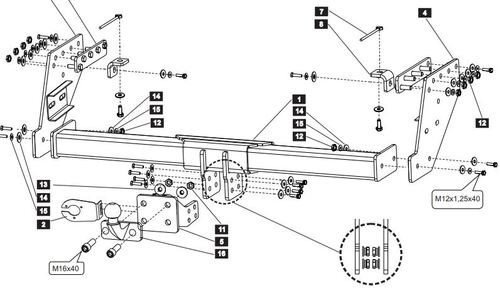 Фаркоп оцинкованный FIAT Doblo 2010-, Opel Combo 2012-2017, в том числе 4x4, в т.ч. Cargo, в т.ч. CNG условно-съемное крепление шара F111A