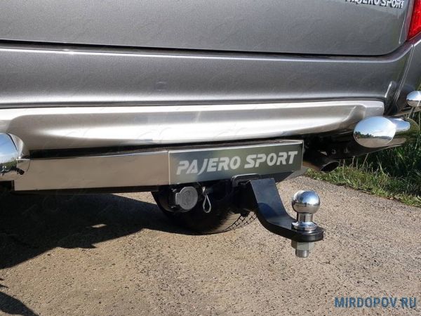 Фаркоп Mitsubishi Pajero Sport 2016-2020 с накладкой с надписью Pajero Sport крюк легкосъемный под квадрат 50x50 (не оцинкованный) TCU00228