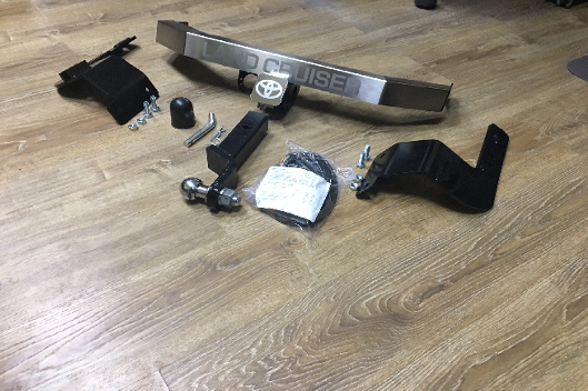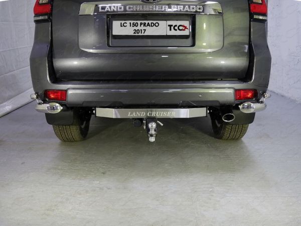 Фаркоп оцинкованный Toyota Land Cruiser Prado 150 Black Onyx 2020-2023 с накладкой с надписью Land Cruiser крюк торцевой на двух болтах TCU00168
