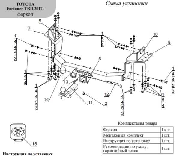 Фаркоп Toyota Fortuner TRD 2017- с накладкой с надписью Toyota крюк легкосъемный под квадрат 50x50 TCU00243