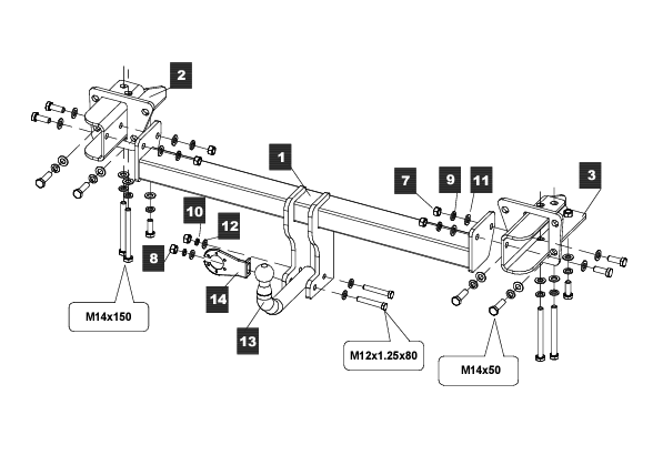 Фаркоп Mercedes V-Class w447 2014-, Mercedes Vito w447 2014-, включая авто с парктроником с условно-съемным креплением шара (на 2 болтах) 313435600001