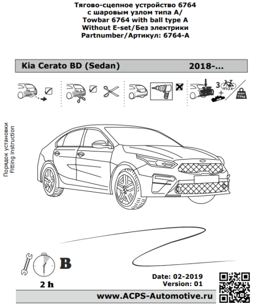 Фаркоп Киа (Kia) Cerato IV седан 2018- 6764-A