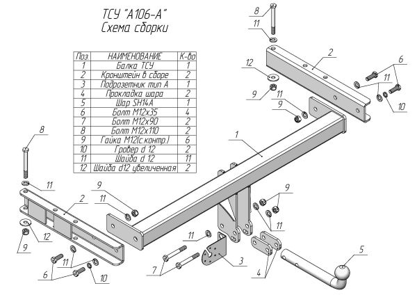 Фаркоп Ауди (Audi) 100 cедан 12/1990-03/1997, (Audi) A6 cедан 12/1990-03/1997 A101-A