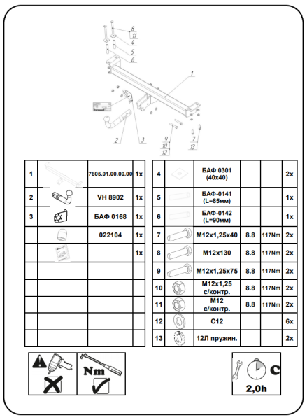 Фаркоп Лада Ларгус R90 универсал легковой 2012-, Лада Ларгус Кросс 2015- крепление шара на двух болтах 2011
