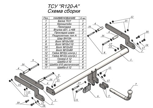 Фаркоп для Renault Fluence 2009-2015 с условно-съемным креплением шара (на 2 болтах) R120-A