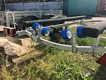 ● Передвижные ложементы могут быть установлены в любой точке поперечен рамы, имеют регулируемый угол наклона и регулируемую высоту. Это позволяет установить их в наиболее удобное положение под угол килеватости судна, избежать давления на продольные реданы, а также расположить судно максимально низко, тем самым обеспечить устойчивость прицепа при движении и осуществлять спуск судна на воду меньшей глубине. При перевозках и хранении судна на прицепе ложементы позволяют равномерно распределить вес техники и уменьшить давление на корпус судна.