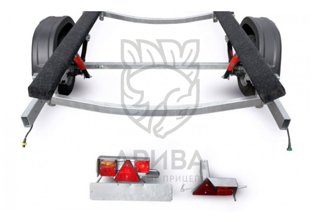 ● В базовую комплектацию входят: сцепное устройство (1400 кг), страховочные цепи (2 шт.), съёмная подставка дышла (1 шт.), держатель штекера (1 шт.), противооткатные упоры (2 шт.).