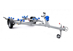 ● Роликовые опоры обеспечивают удобный спуск судна на воду и его подъём на сложных, необорудованных участках берега, где нет возможности заезда прицепа на достаточную глубину. Четыре роликовых модуля, с четырьмя роликами на каждом, могут быть установлены в любой точке поперечины рамы, их оцинкованный кронштейн имеет саморегулируемый угол наклона, а каждая пара роликов самостоятельно подстраивается под обводы судна. Такая конструкция облегчает центрирование и обеспечивает удобную поддержку судна и при его загрузке и выгрузке под большим углом. Вспомогательный килевой ролик на задней поперечине обеспечивает свободное скольжение киля при подъёме судна на прицеп.