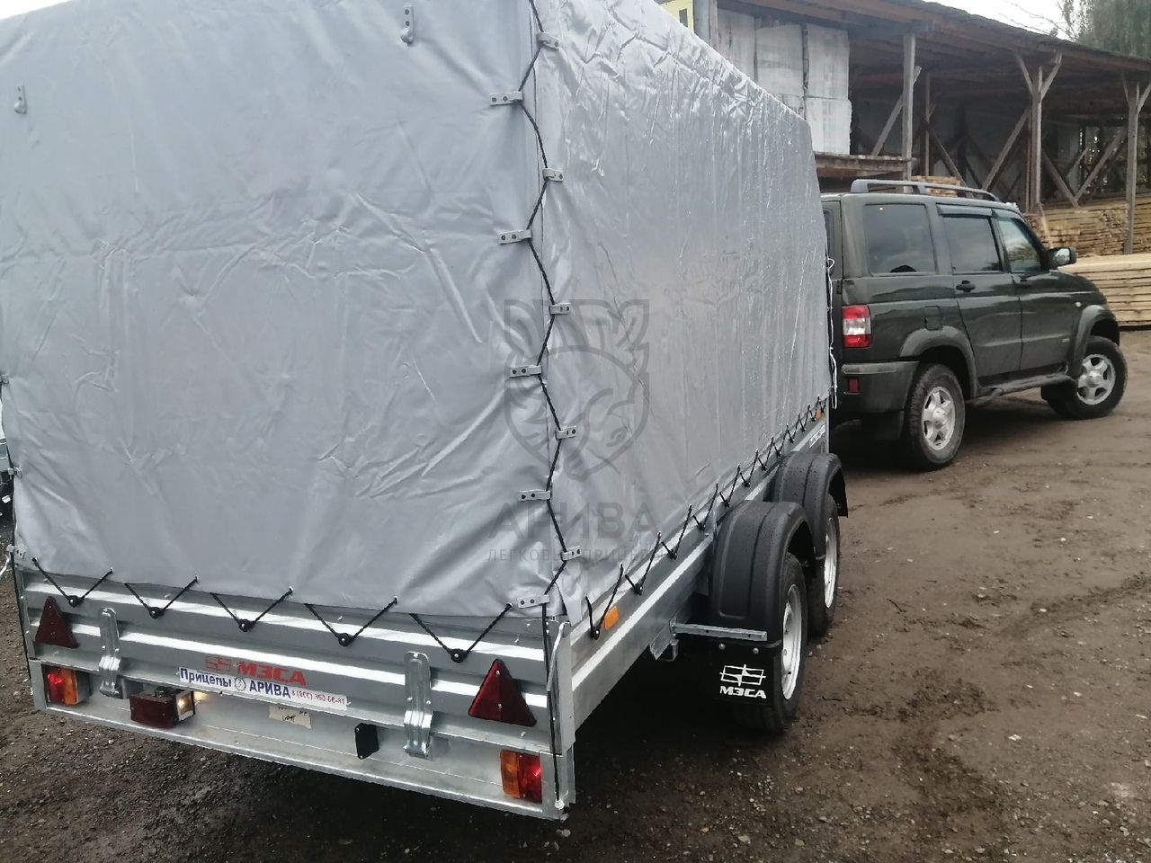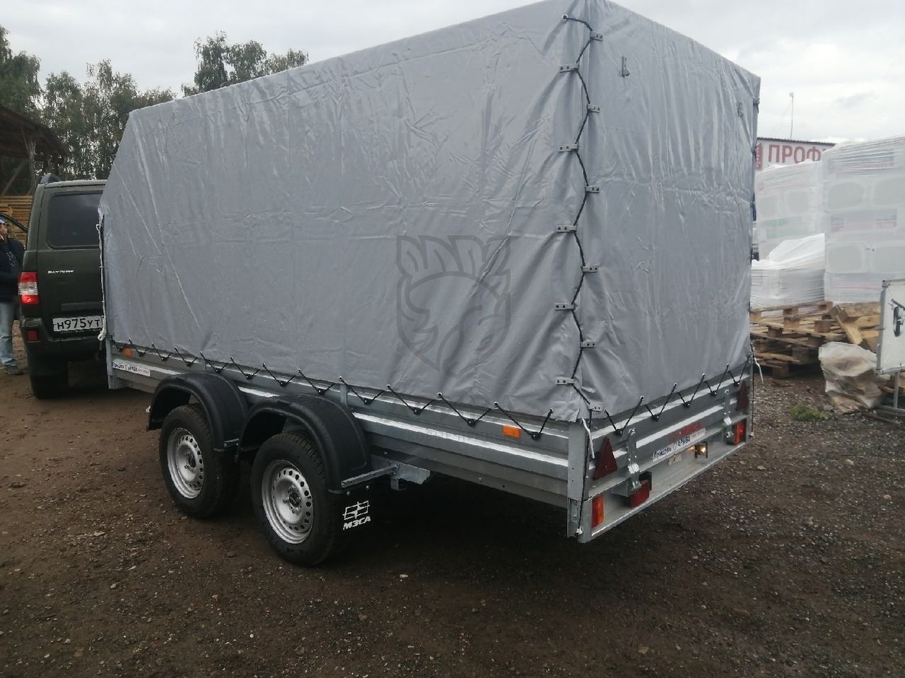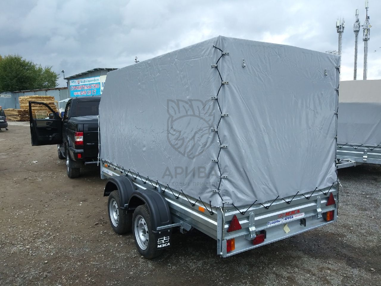 Цена указана за следующую комплектацию: прицеп МЗСА 817732.022, тент 351515С и каркас 351515С с высотой от пола прицепа 150 см и опорное колесо в сборе с хомутом и крепежом.