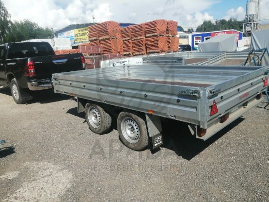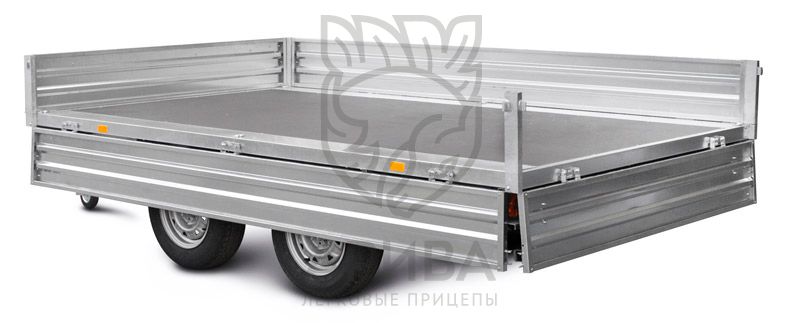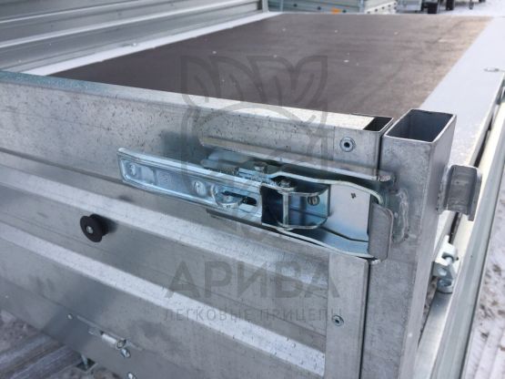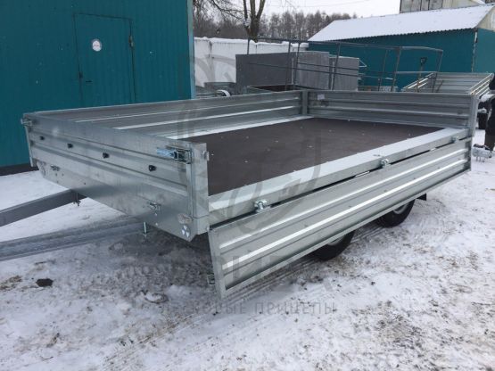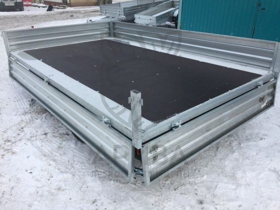 ● Откидные борта дают возможность осуществлять загрузку и выгрузку с любой стороны платформы. Они выполнены из оцинкованного стального листа (толщина 1,5 мм) с дополнительной штамповкой рёбер жёсткости. Рёбра жёсткости позволяют повысить устойчивость бортов к динамическим/ударным нагрузкам. Борта и стойки бортов — съёмные.