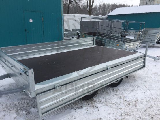 ● Дно прицепа выполнено из многолистовой ламинированной фанеры с противоскользящим покрытием. Устойчиво к износу и воздействию влаги. Боковины дна платформы выполнены из оцинкованной стали и оборудованы петлями крепления груза (6 шт.).