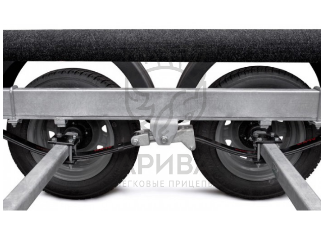 ● Рессорная подвеска (4 рессоры по 3 листа) с гидравлическими амортизаторами сохраняет стабильную плавность хода при разной загруженности прицепа.