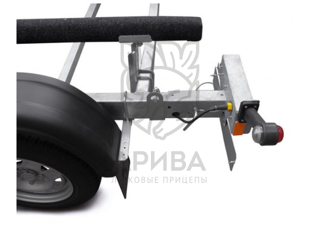 ● Оцинкованное съёмное дышло из стального замкнутого профиля установлено на болтовых соединениях, что позволяет при необходимости отсоединить его от рамы и тем самым уменьшить занимаемую площадь в гараже или на стоянке.