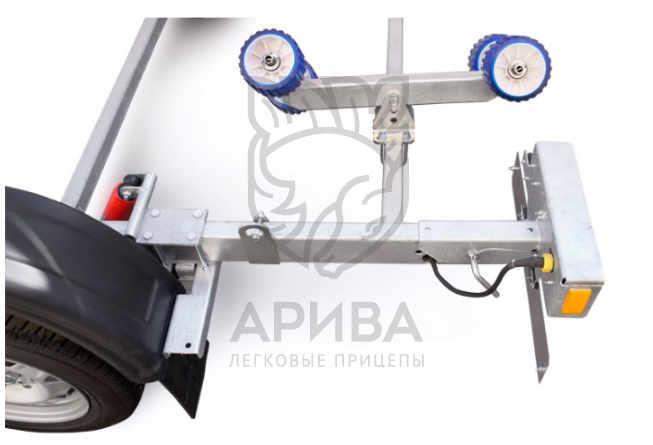 ● Роликовые опоры обеспечивают удобный спуск судна на воду и его подъём на сложных, необорудованных участках берега, где нет возможности заезда прицепа на достаточную глубину. Четыре роликовых модуля, с четырьмя роликами на каждом, могут быть установлены в любой точке поперечины рамы, их оцинкованный кронштейн имеет саморегулируемый угол наклона, а каждая пара роликов самостоятельно подстраивается под обводы судна. Такая конструкция облегчает центрирование и обеспечивает удобную поддержку судна и при его загрузке и выгрузке под большим углом. Вспомогательный килевой ролик на задней поперечине обеспечивает свободное скольжение киля при подъёме судна на прицеп.