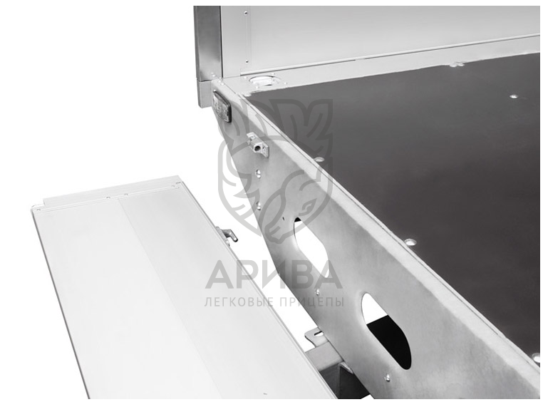 ● Дно прицепа выполнено из многослойной ламинированной фанеры с противоскользящим покрытием. Устойчиво к износу и воздействию влаги. Боковины дна платформы выполнены из оцинкованной стали и оборудованы усиленными петлями крепления груза.