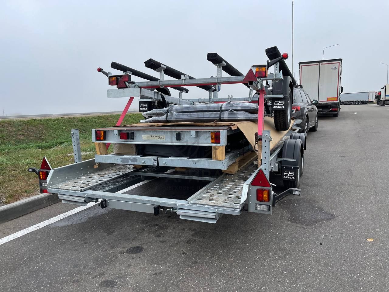 Снаряжённая масса прицепа указана без учёта веса аппарелей, опорных стоек и отсеков для их перевозки.