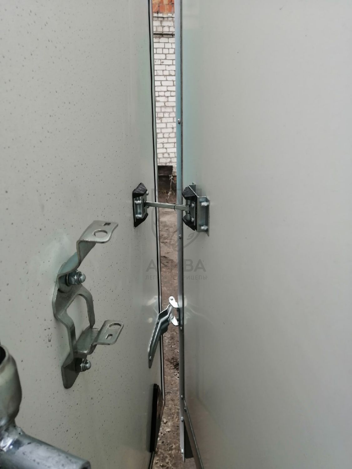 ● Распашные двери (фанера – 18 мм) с резиновым уплотнителем установлены на стальном портале и оборудованы штанговым оцинкованным запором с проушинами для навесного замка (пломбы) и фиксаторами дверей в открытом и закрытом положении.