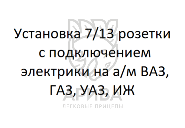 Купить Установка 7/13 розетки с подключением электрики на а/м ВАЗ, ГАЗ, УАЗ, ИЖ. 2000р 114605062017 в городах Казань, Уфа, Ижевск, Набережные Челны, Чебоксары по низким ценам. Большой выбор недорогих прицепов, фаркопов, автобоксов, запчастей для легковых прицепов. Быстрая доставка. Оригинальные товары, гарантия, рассрочка, распродажи, скидки и акции. Огромный ассортимент. Реальные отзывы покупателей